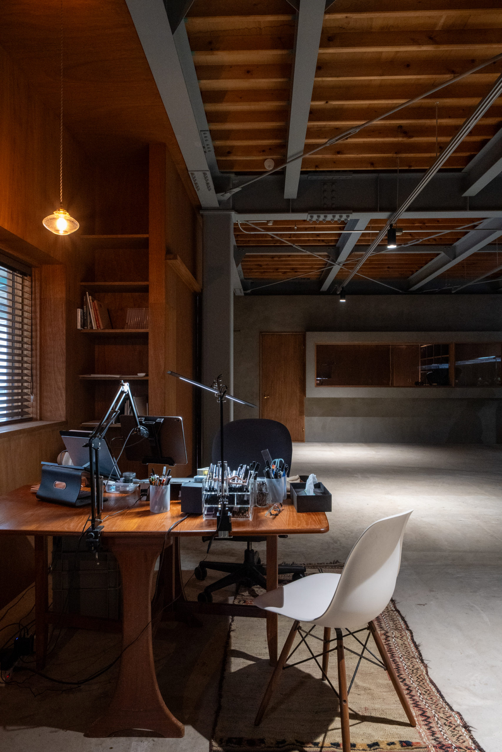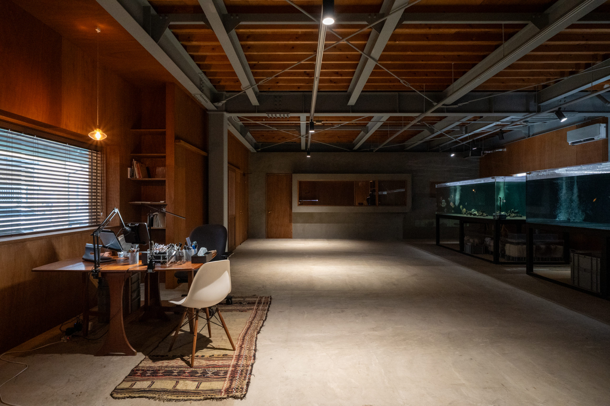 行田の家+アトリエ | 埼玉県行田市 所在地 埼玉県行田市 用途 住宅+アトリエ 敷地面積 327.20㎡ 建築面積 194.97㎡ 延床面積 455.27㎡(改修面積168.55㎡) 構造 鉄骨造 竣工 2025年8月